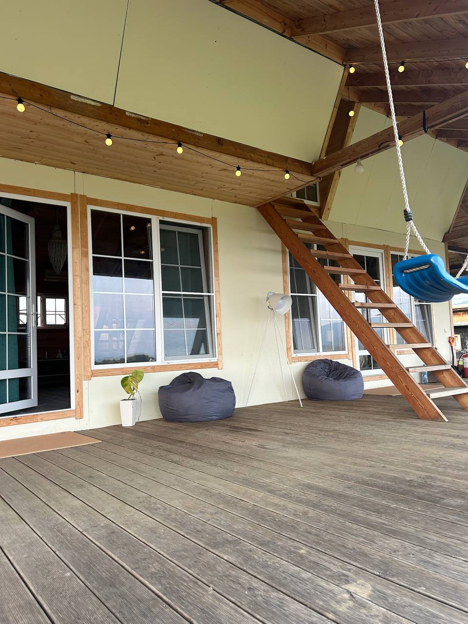 Зал для практик: есть отдельно стоящий зал на 20 человек для дыхательных и телесных практик, с открытой площадкой на крыше.