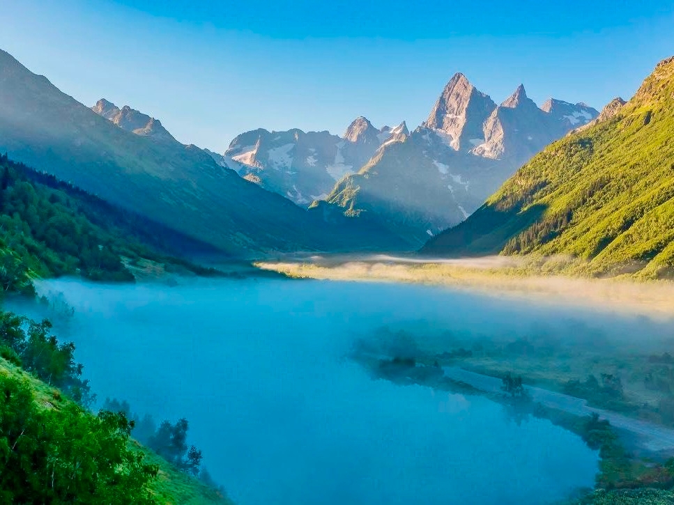 Представьте: утром вы скользите по идеальному весеннему снегу склонов Домбая, а после обеда гуляете по экотропам Тебердинского заповедника, вдыхая ароматы первоцветов. Эта контрастность — главная магия нашего путешествия.