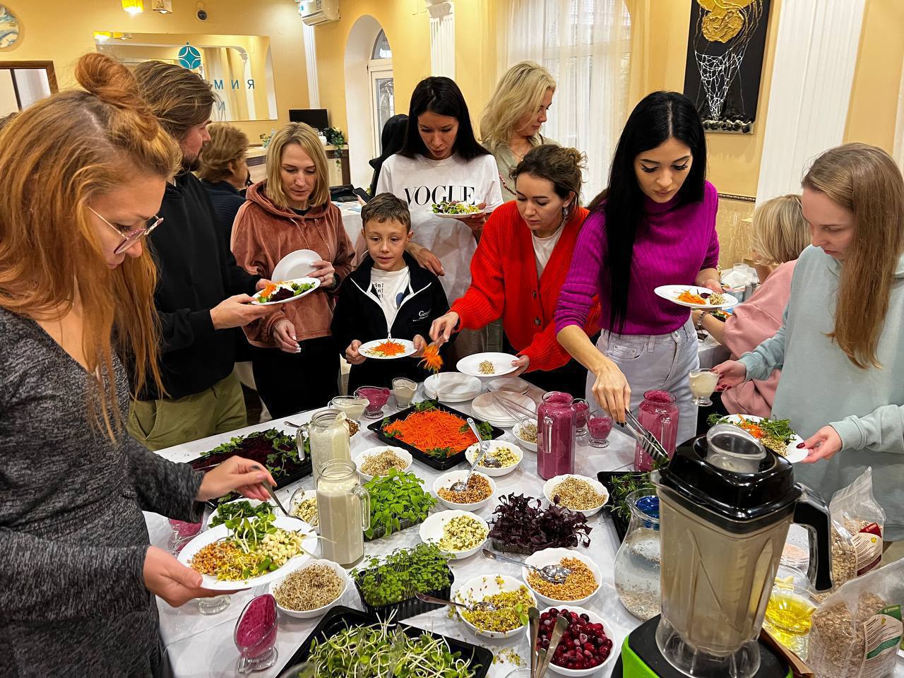 Замеры тела. Прием витграсса (сок побегов пшеницы). Йога. Мастер классы: «живая кулинария», «оживление любимых блюд», энзимное детокс-питание. Изучение состояние клеток крови ПОСЛЕ ТУРА на диагностическом комплексе ГЕМОСКАН.